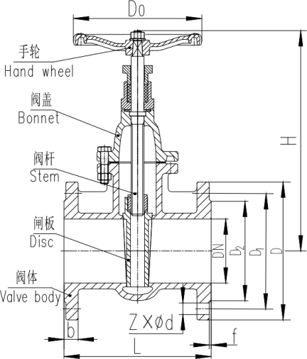 | Nominal Diameter (DN, mm) | L | D | D1 | D2 | b-f | Z-φd | H | Do |